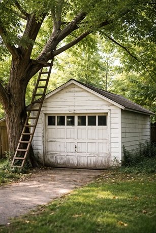 The damn tree grew beside the damn garage, so once up there you could sit on top of the damn garage. It was one of several damn clubhouses.