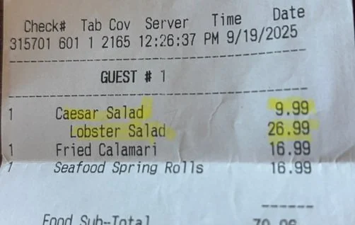 Lobster salad is what goes into a lobster roll. Look what happens to the price of a simple Caesar salad when you throw one scoop of lobster salad on top of it.